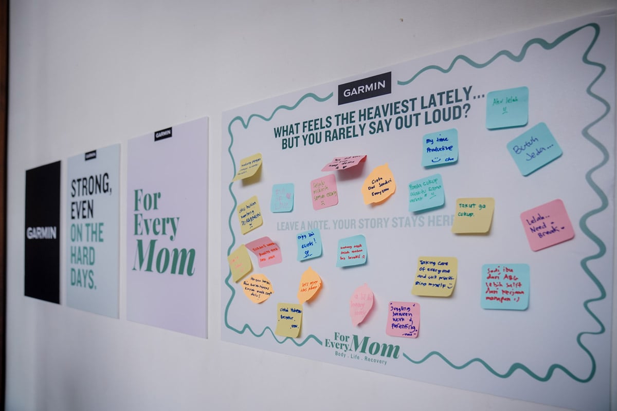 Selain sesi diskusi, Garmin juga menghadirkan pengalaman interaktif yang memperkaya perjalanan peserta dalam memahami diri mereka. Reset Session menjadi ruang bagi peserta untuk beristirahat dan melakukan relaksasi melalui teknik pernapasan, sementara The Unspoken Wall mengajak peserta mengekspresikan beban mental yang sering kali tidak terlihat.