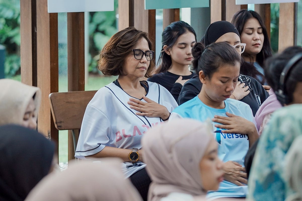 Melalui sesi reset movement, peserta diajak untuk merasakan langsung manfaat gerakan ringan dan teknik pernapasan dalam membantu tubuh dan pikiran kembali seimbang. Aktivitas ini merupakan praktik sederhana yang dapat diintegrasikan ke dalam rutinitas harian, terutama bagi ibu dengan jadwal yang padat.
